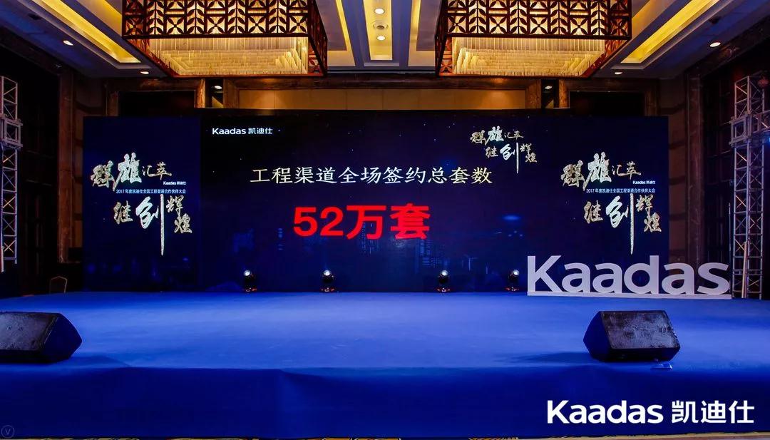 在簽約環(huán)節(jié),現(xiàn)場宣布了簽約政策,合作伙伴們紛紛上臺簽約,不斷有大額訂單在屏幕上一一展現(xiàn),最終全場總訂單額達(dá)到52萬套,是凱迪仕工程渠道發(fā)展過程中一個里程碑式的數(shù)字,也展現(xiàn)了凱迪仕的非凡實(shí)力。