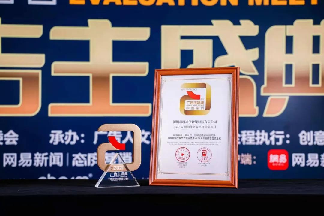 2021年12月11日-13日,由中國廣告協(xié)會主辦、廣告人文化集團承辦的第28屆中國國際廣告節(jié)在福建廈門盛大舉行,同期舉辦2021廣告主盛典等矚目盛會。Kaadas凱迪仕與騰訊廣告、比亞迪、興業(yè)銀行、加多寶、娃哈哈、青島啤酒等知名企業(yè)共同入選,連續(xù)5年勇奪中國廣告界至高榮譽——廣告主獎,獲“2021年度數(shù)字營銷案例”重磅榮譽,智能鎖行業(yè)唯一獲獎品牌!