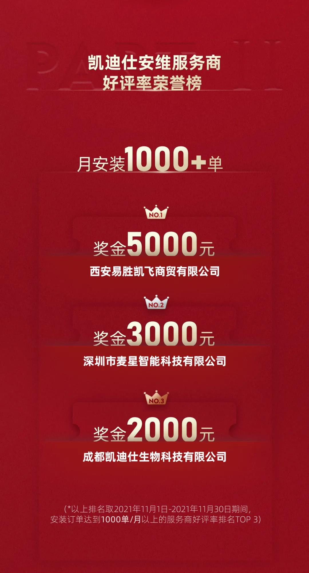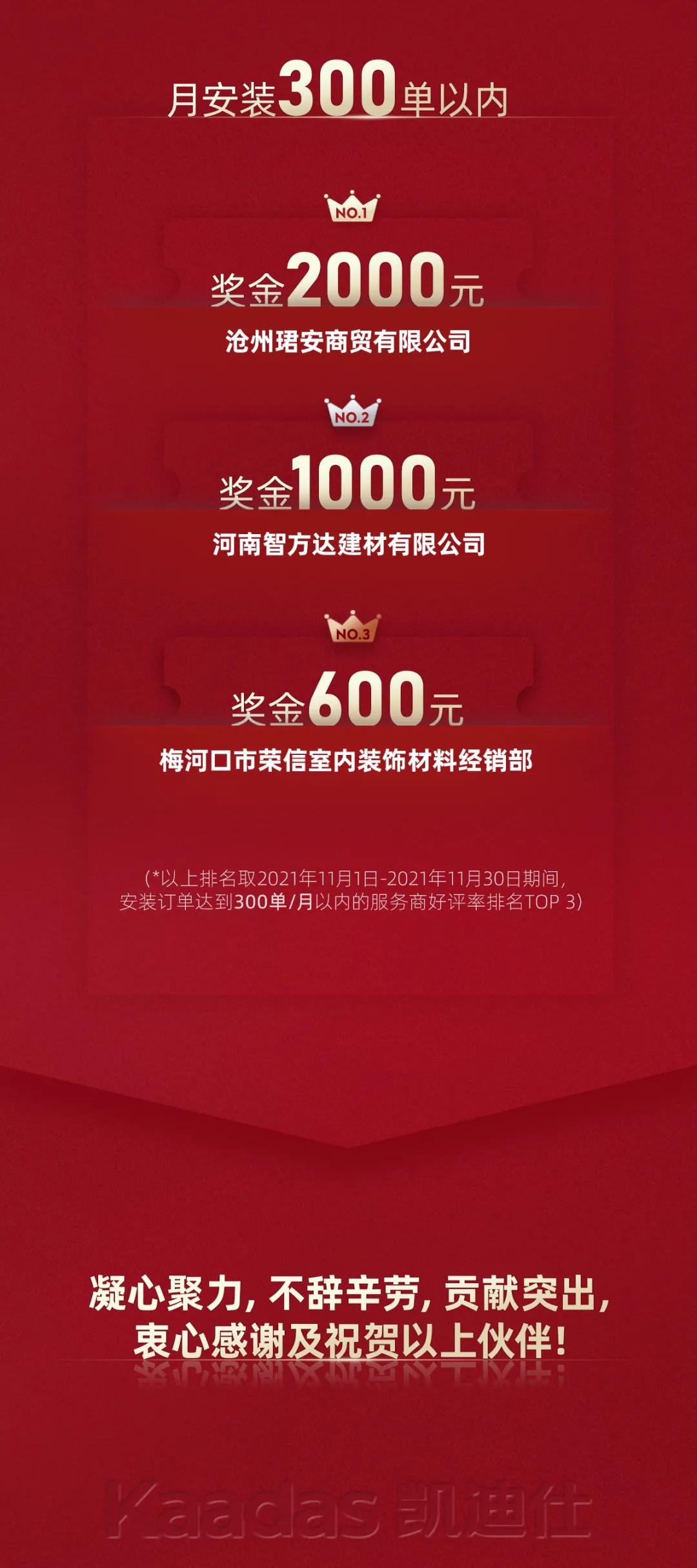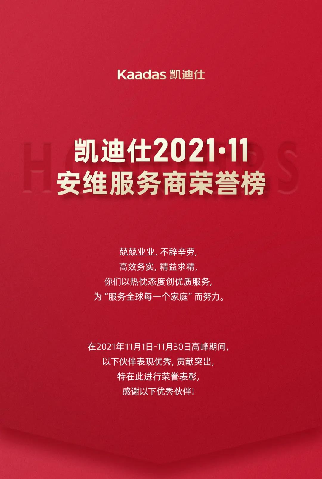 服務(wù)至上 | Kaadas凱迪仕11月安維服務(wù)商榮譽(yù)榜發(fā)布!