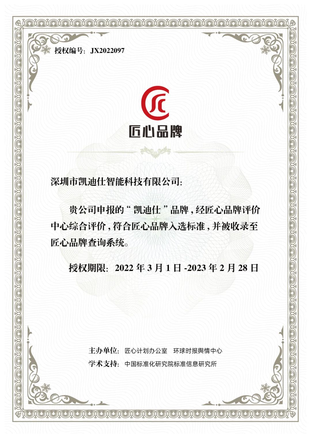 近日,由匠心計(jì)劃辦公室和環(huán)球時(shí)報(bào)輿情中心主辦,中國標(biāo)準(zhǔn)化研究院標(biāo)準(zhǔn)信息研究所提供學(xué)術(shù)支持的2021匠心品牌評(píng)選工作圓滿完成并發(fā)布評(píng)選結(jié)果。Kaadas凱迪仕與華為、比亞迪、安踏等眾多國內(nèi)知名品牌共同入選,榮獲2021“匠心品牌”稱號(hào),成為智能鎖行業(yè)唯一獲獎(jiǎng)品牌!