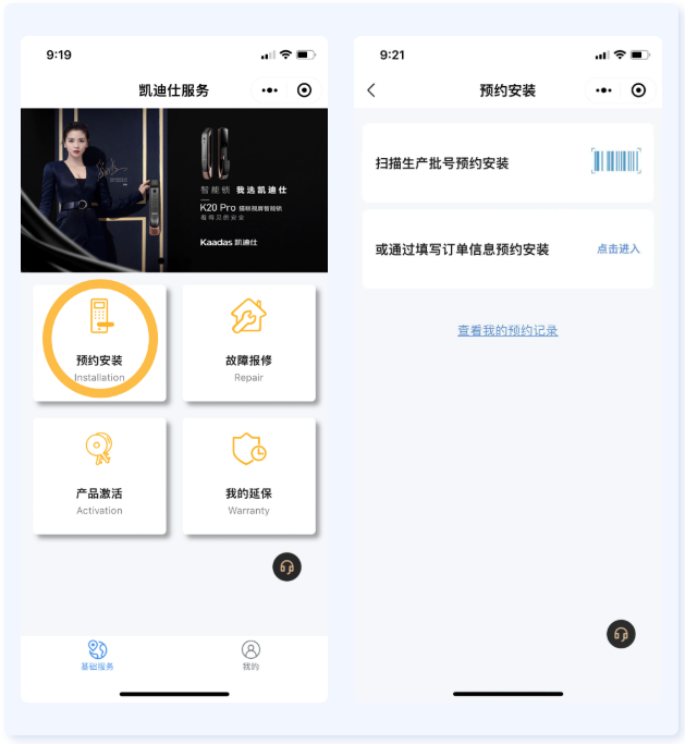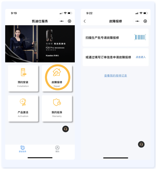 此次新增了【預(yù)約安裝】、【故障報(bào)修】、