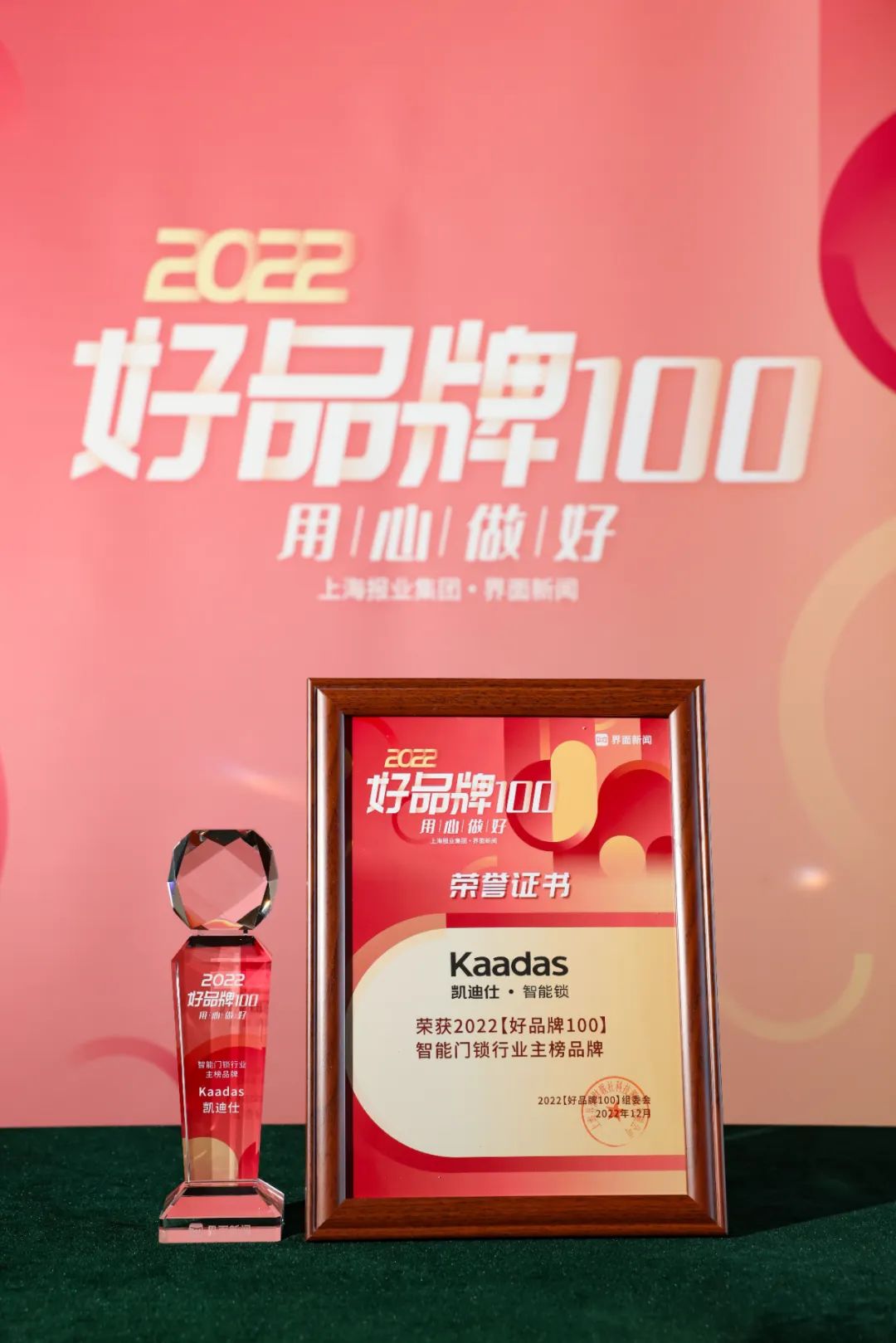 本次評選每個賽道選取至少10個候選品牌,6個入圍品牌,最終評選每個賽道誕生1個主榜品牌、2個提名品牌。凱迪仕在廣告?zhèn)鞑バЧ?、品牌專利、市場占有率、品牌口碑、?chuàng)新力多維度方面優(yōu)勢突出,獲得行業(yè)專家和大眾高度認(rèn)可,再次獲得2022【好品牌100】大獎,成為智能鎖賽道唯一主榜品牌。