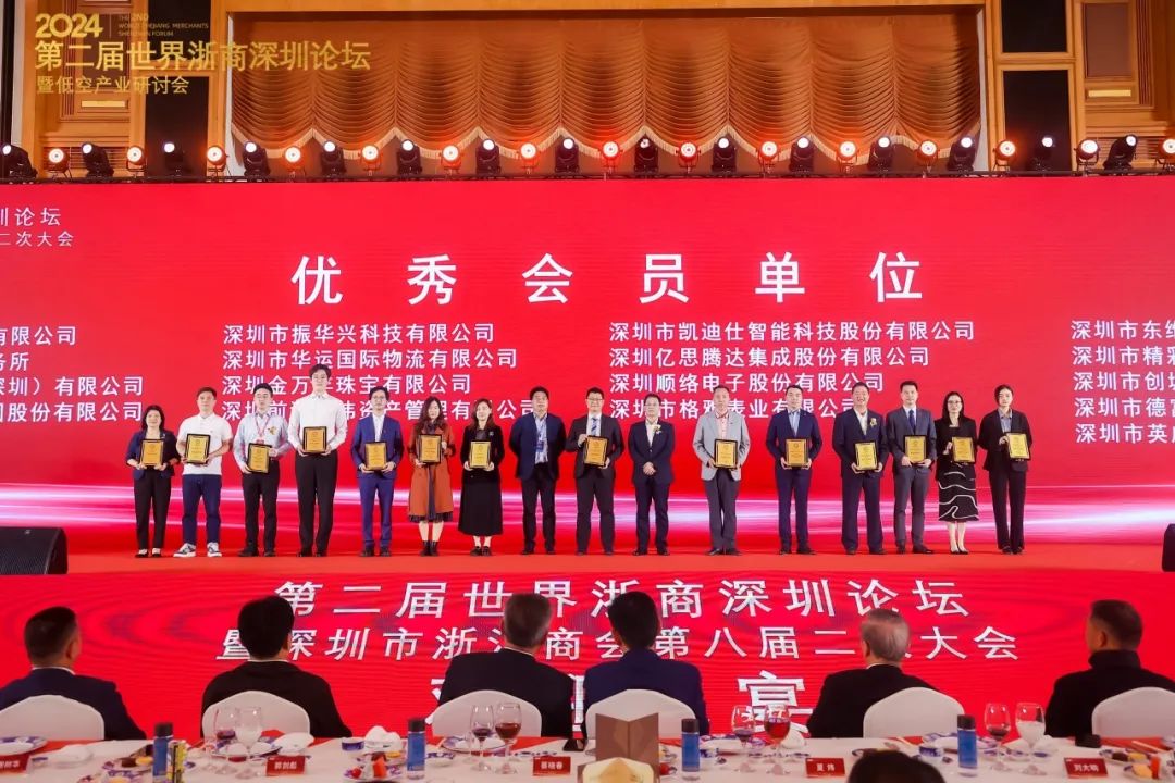 深圳市凱迪仕智能科技股份有限公司被授予“優(yōu)秀會員單位”,Kaadas凱迪仕集團(tuán)董事長蘇祺云先生上臺代表領(lǐng)獎(jiǎng)(左三)