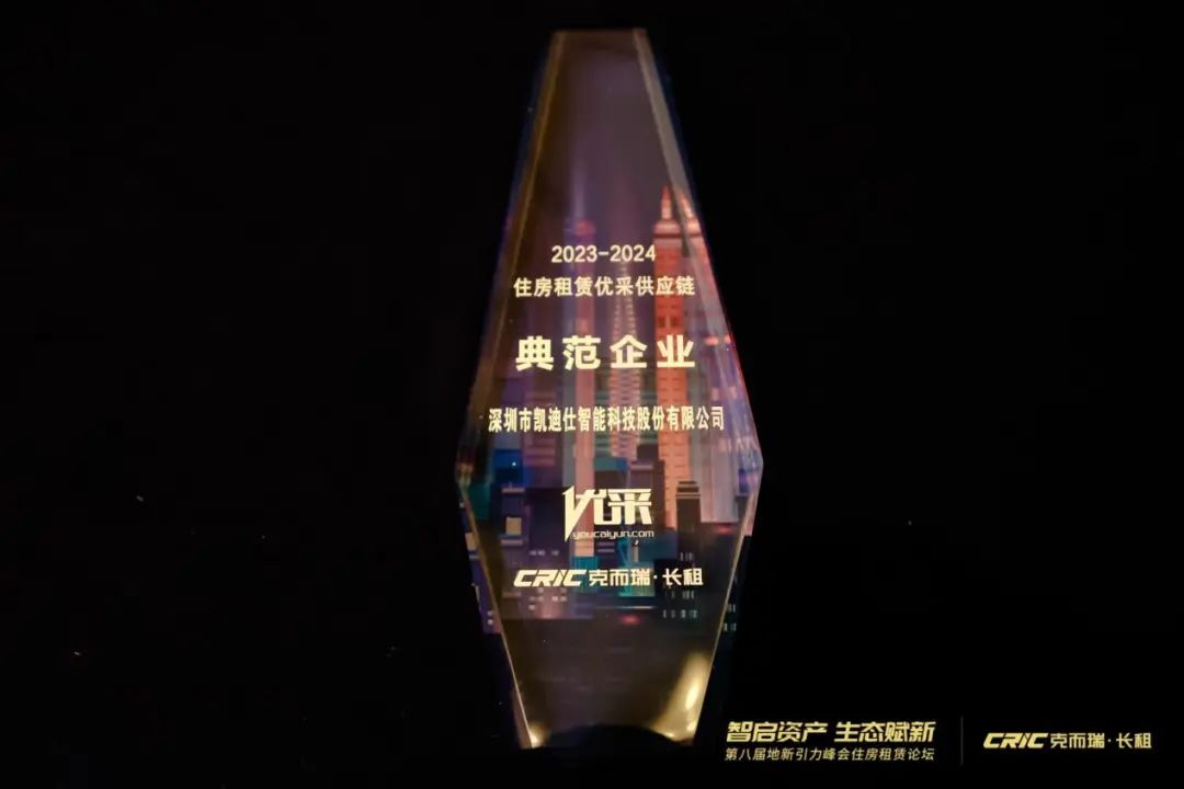 “2023-2024住房租賃優(yōu)采供應(yīng)鏈”大獎(jiǎng)為2024年首次設(shè)立,在由中房?jī)?yōu)采聯(lián)合中國房地產(chǎn)業(yè)協(xié)會(huì)長租房分會(huì)、克而瑞長租,聯(lián)合舉辦的優(yōu)采長租房產(chǎn)業(yè)鏈生態(tài)建設(shè)閉門會(huì)及第八屆地新引力峰會(huì)住房租賃論壇期間頒發(fā),凱迪仕成為行業(yè)首家獲得該獎(jiǎng)的智能門鎖品牌。