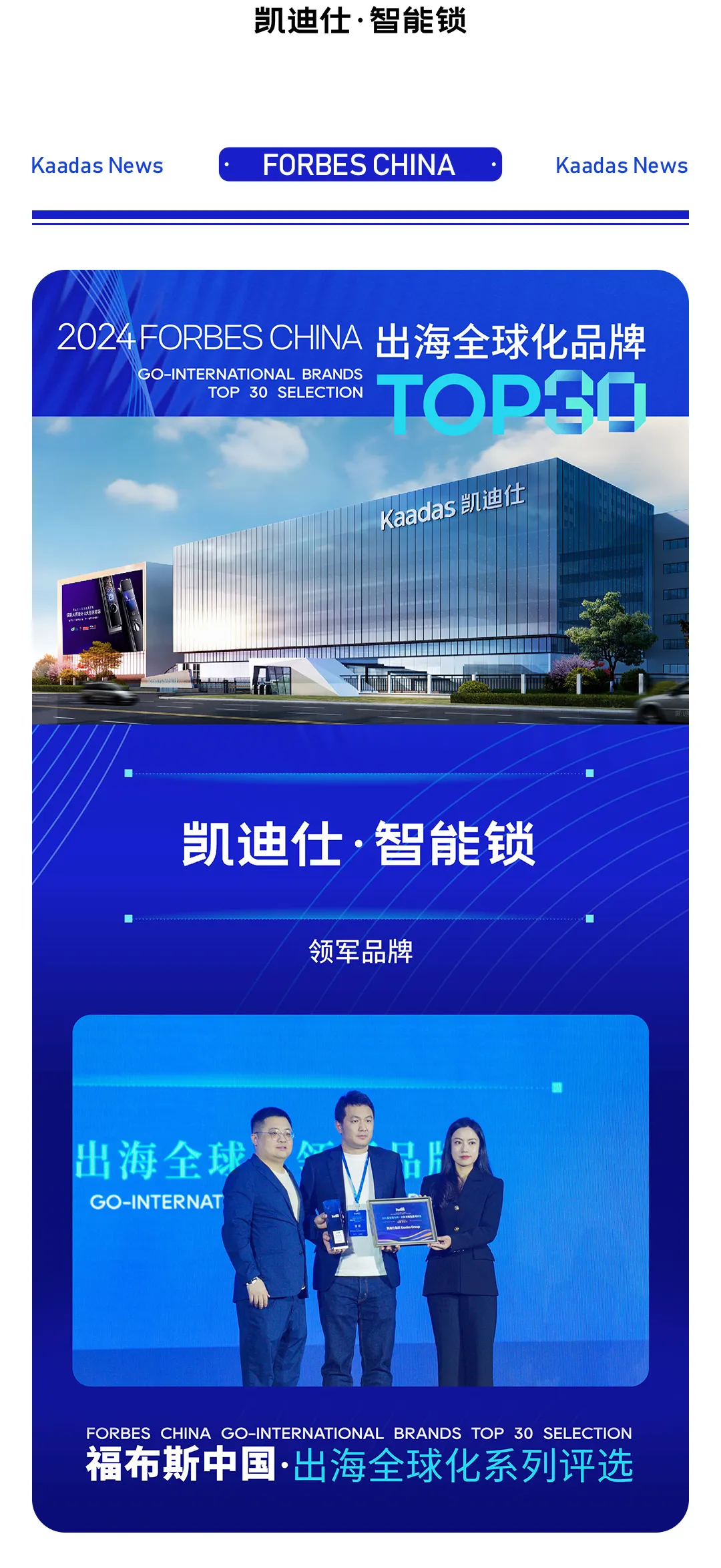 智能鎖全球典范!凱迪仕榮膺2024福布斯中國·出海全球化領(lǐng)軍品牌TOP30
