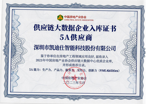 與此同時(shí),凱迪仕同步被收錄2023年中國房地產(chǎn)業(yè)協(xié)會5A供應(yīng)商企業(yè)庫(5A,即生產(chǎn)力、產(chǎn)品力、服務(wù)力、交付力、創(chuàng)新力),品牌在工程市場的優(yōu)異表現(xiàn)備受行業(yè)權(quán)威肯定。