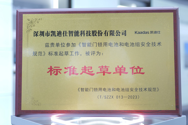 近期,凱迪仕被評(píng)為《智能家居安防系統(tǒng)通用技術(shù)要求》、《智能門鎖用電池和電池組安全技術(shù)規(guī)范》兩大行業(yè)“標(biāo)準(zhǔn)起草單位”。同時(shí),凱迪仕集團(tuán)副總裁、產(chǎn)品及研發(fā)中心總經(jīng)理李顯榮獲“標(biāo)準(zhǔn)起草人”稱號(hào)。凱迪仕將秉持社會(huì)責(zé)任感,讓科技與安全共同守護(hù)每一個(gè)家庭,守護(hù)每一個(gè)珍貴瞬間。
