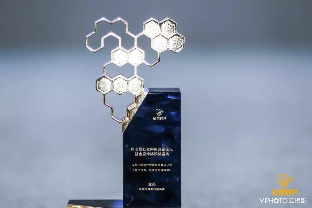 凱迪仕憑借與人民日?qǐng)?bào)聯(lián)合打造的《全民接力,代表圓月溫暖你》,從1956件作品中脫穎而出,與上海電信、優(yōu)酷、南方電網(wǎng)、豐田汽車(chē)、騰訊、TCL、伊利、東風(fēng)汽車(chē)、優(yōu)衣庫(kù)、杰克瓊斯、京東等企業(yè)一起,榮獲2018社交網(wǎng)絡(luò)營(yíng)銷(xiāo)金蜜蜂獎(jiǎng)——最佳品牌營(yíng)銷(xiāo)案例類金獎(jiǎng)!這是凱迪仕繼2017年最佳整合類金獎(jiǎng)后,第二次獲得金蜜蜂獎(jiǎng),再一次證明了凱迪仕在社會(huì)化營(yíng)銷(xiāo)領(lǐng)域的強(qiáng)大實(shí)力。