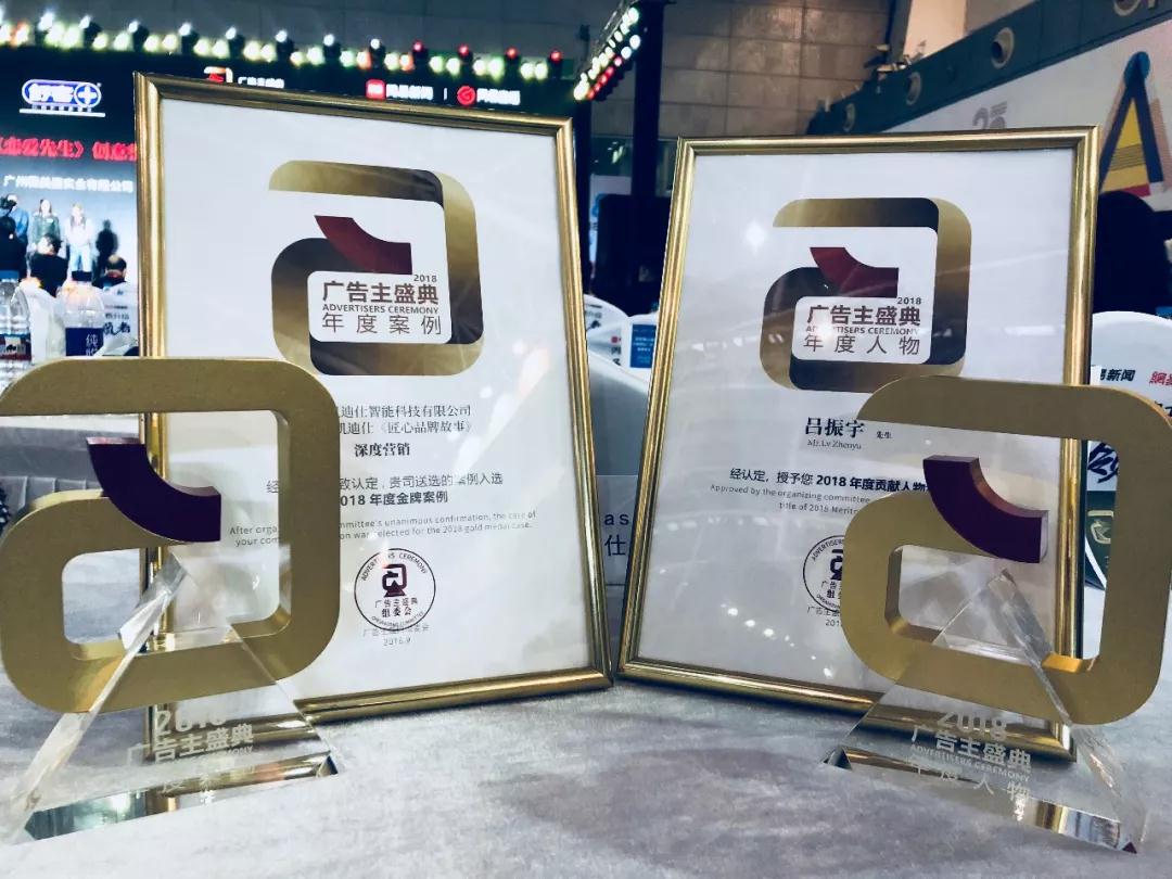 凱迪仕一舉斬獲2018廣告主獎·年度深度營銷案例,并入選2018年度金牌案例。凱迪仕市場總監(jiān)呂振宇榮獲廣告主盛典年度人物之2018年度貢獻(xiàn)人物。