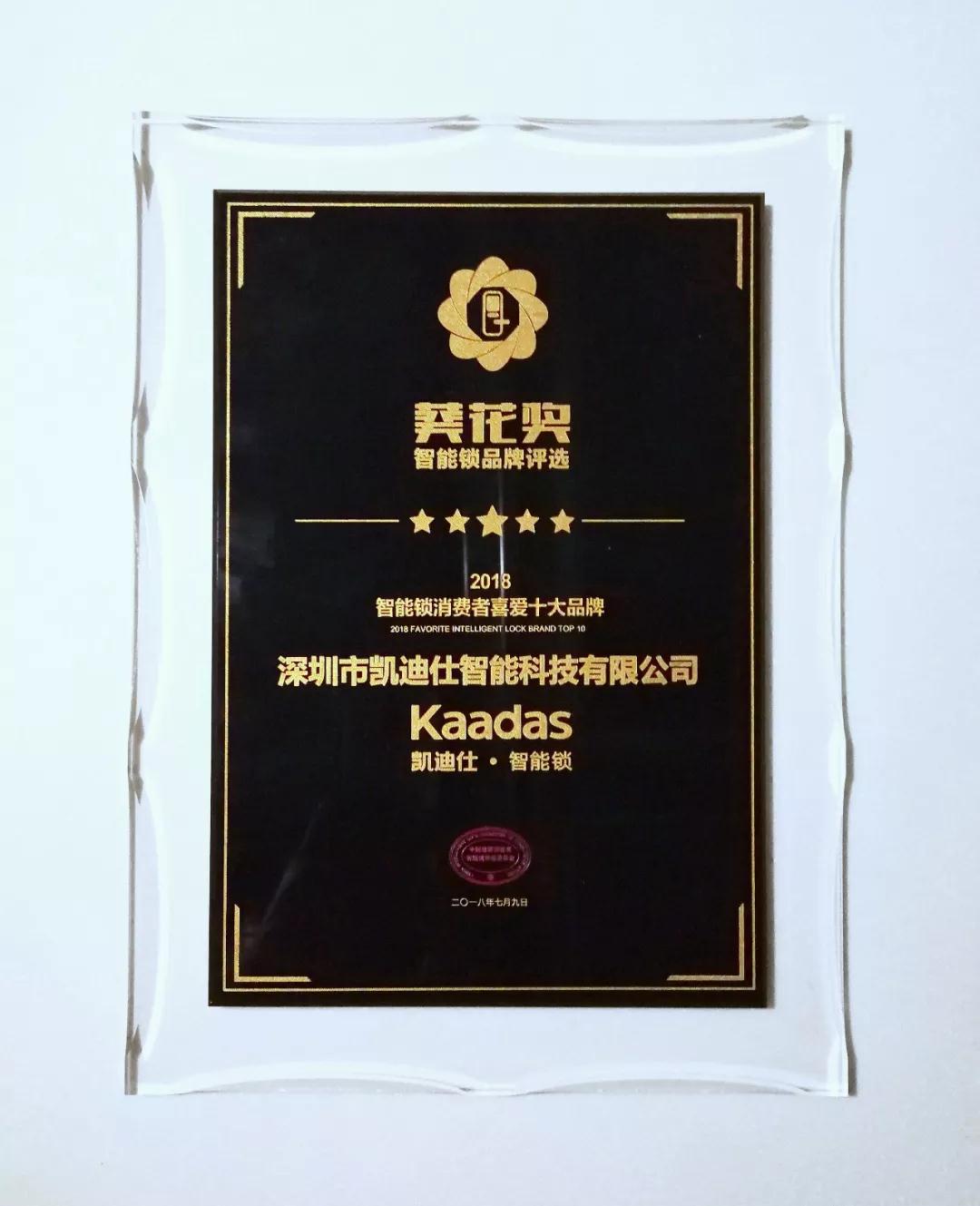 Kaadas凱迪仕榮獲“消費者喜愛十大品牌”。