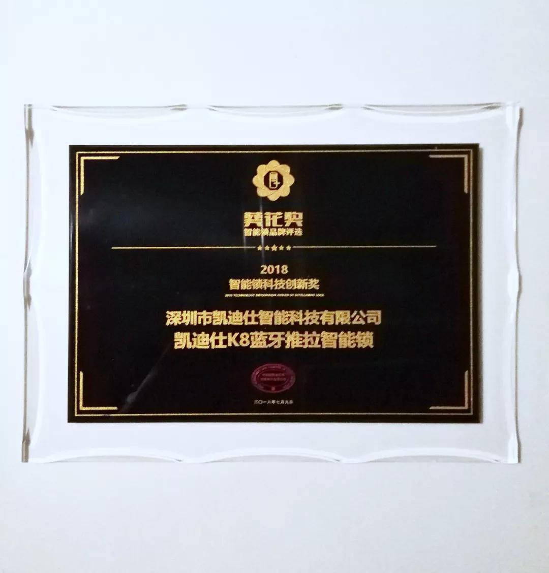 凱迪仕明星產(chǎn)品K8藍(lán)牙推拉鎖榮獲“智能鎖科技創(chuàng)新產(chǎn)品獎”。