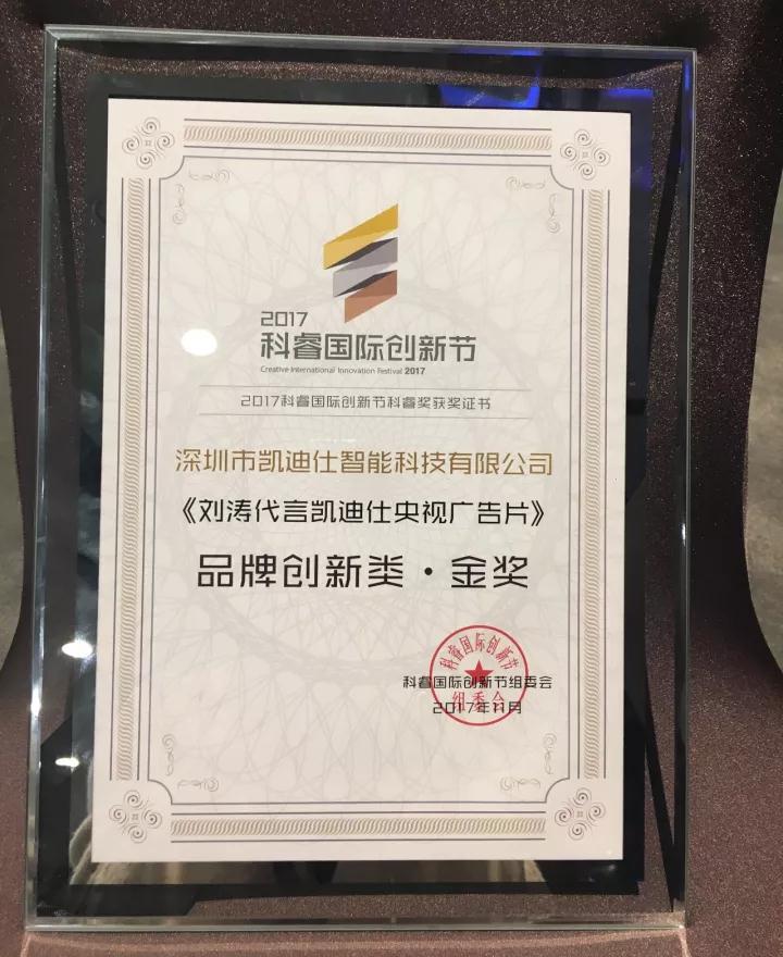 2017年11月24日至25日,為期兩天的“2017國際科睿創(chuàng)新節(jié)暨國際創(chuàng)新峰會”在北京國際會議中心舉行。Kaadas凱迪仕在科睿獎頒獎典禮上榮獲品牌創(chuàng)新金獎。
