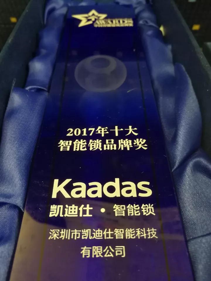 Kaadas凱迪仕榮獲“2017十大智能鎖品牌獎”,并位居十大品牌之首。