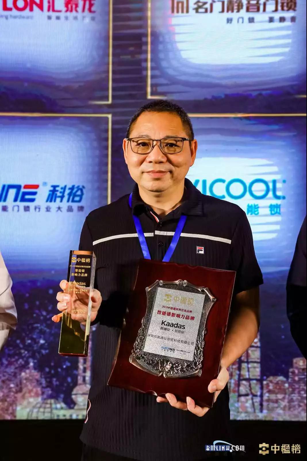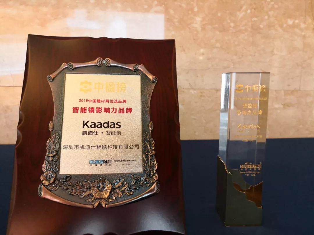 Kaadas凱迪仕在頒獎(jiǎng)典禮上榮獲2019中國建材網(wǎng)優(yōu)選品牌——“智能鎖影響力品牌”。凱迪仕工程事業(yè)部副總甄偉業(yè)先生代表我司應(yīng)邀出席會(huì)議。