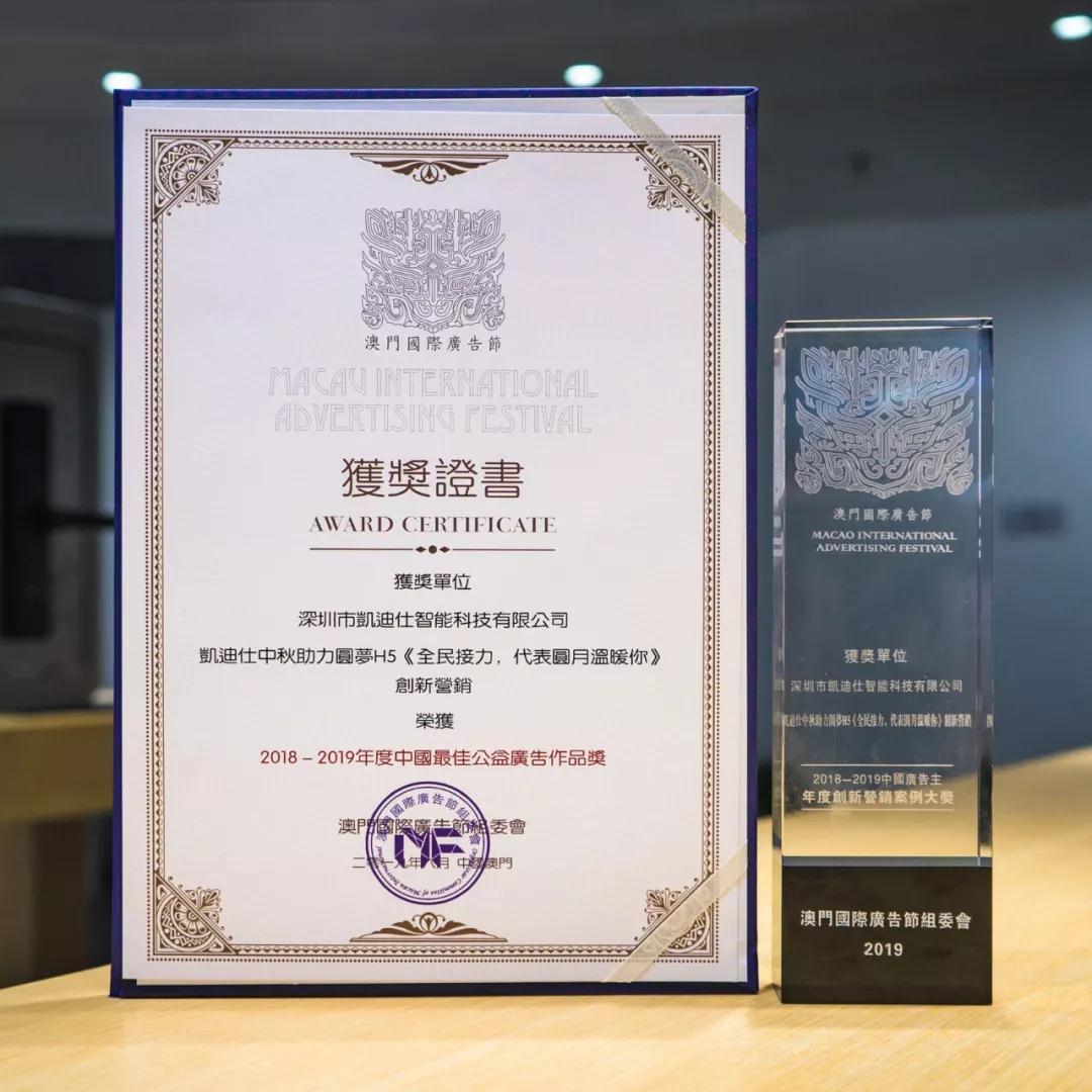 2019年6月6日,“凝聚灣區(qū),激發(fā)創(chuàng)新”第三屆澳門(mén)國(guó)際廣告節(jié)頒獎(jiǎng)儀式于澳門(mén)科學(xué)館隆重召開(kāi),在本屆國(guó)際廣告節(jié)中,凱迪仕成功斬獲2018-2019中國(guó)廣告主年度創(chuàng)新?tīng)I(yíng)銷(xiāo)獎(jiǎng),同時(shí)獲得年度中國(guó)最佳公益廣告獎(jiǎng),是唯一一家獲獎(jiǎng)的智能鎖品牌!
