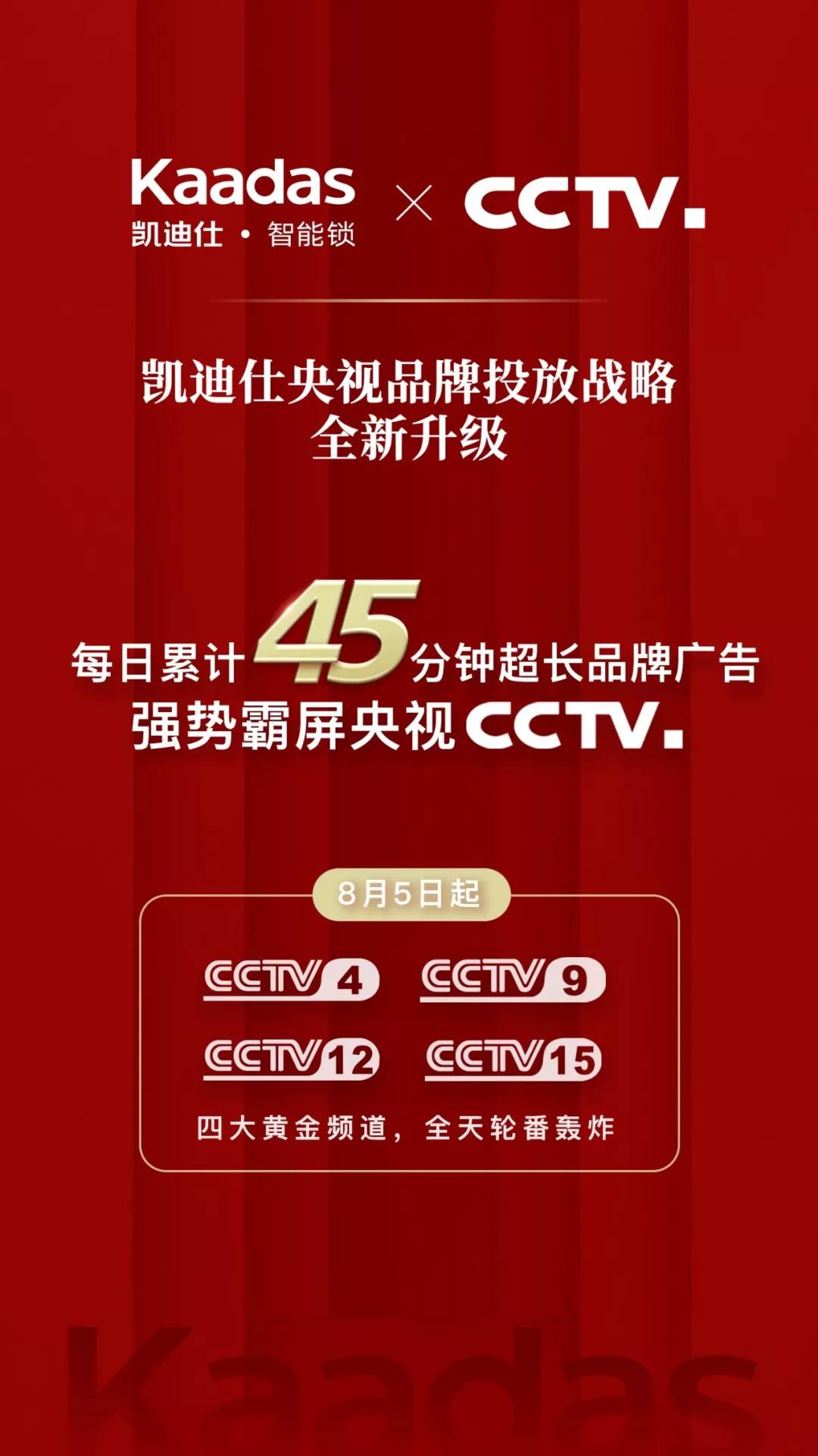 此次,凱迪仕全新登陸央視CCTV-9和CCTV-15黃金頻道,攜手知名影星劉濤,演繹Kaadas凱迪仕2019全新品牌TVC廣告,進(jìn)一步深化“智能鎖=凱迪仕”的品牌形象,完美展現(xiàn)品牌魅力。