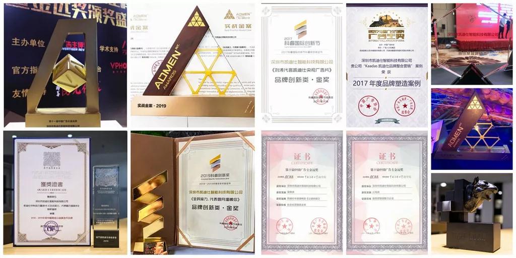 一直以來,Kaadas凱迪仕不斷創(chuàng)新并提升品牌影響與價(jià)值,對(duì)推動(dòng)行業(yè)發(fā)展做出了突出貢獻(xiàn)。截止2019年,凱迪仕在廣告屆已包攬中國(guó)廣告至高獎(jiǎng)長(zhǎng)城獎(jiǎng)、虎嘯獎(jiǎng)、ADMEN國(guó)際大獎(jiǎng)、金遠(yuǎn)獎(jiǎng)、科睿獎(jiǎng)、金蜜蜂、金比特、澳門國(guó)際廣告節(jié)創(chuàng)新營(yíng)銷案例大獎(jiǎng)等多項(xiàng)業(yè)界權(quán)威榮譽(yù)。