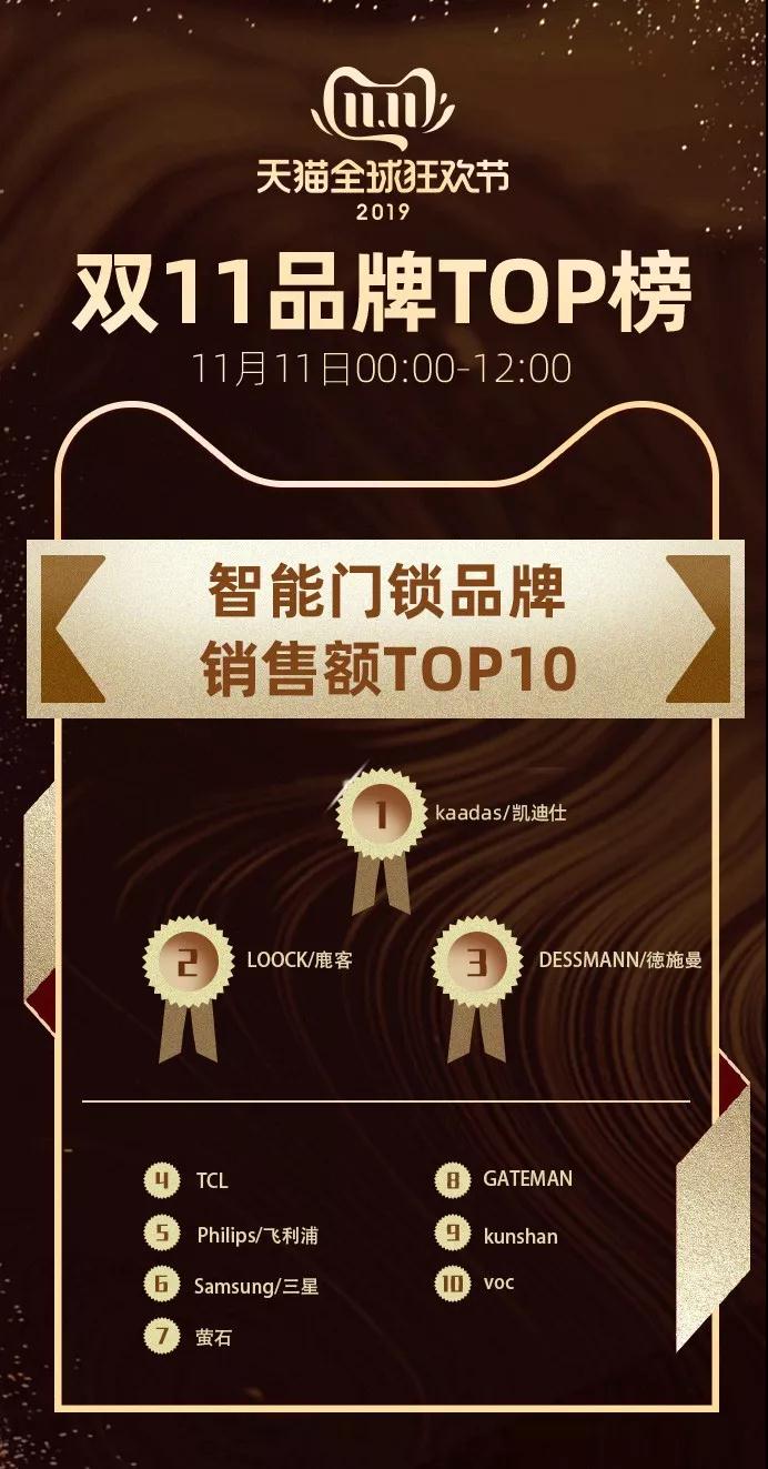 據(jù)“雙11”天貓官方榜單數(shù)據(jù)顯示,在智能門(mén)鎖品牌銷(xiāo)售額榜單、智能鎖天貓店鋪榜單及智能鎖行業(yè)品牌榜單中,凱迪仕均位列第一。