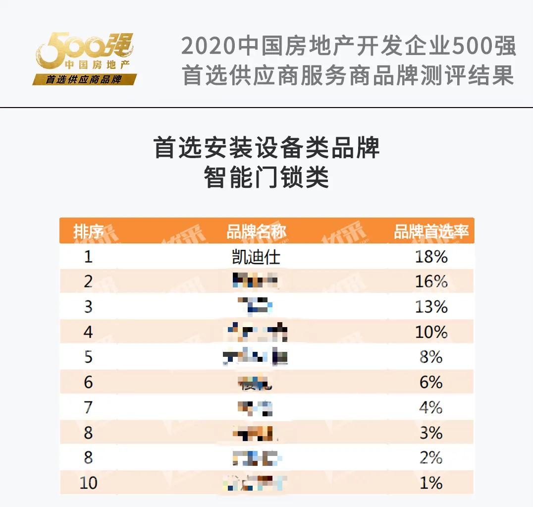 此次,凱迪仕榮獲“2020中國房地產(chǎn)開發(fā)企業(yè)500強首選供應(yīng)商”殊榮,并以高達(dá)18%的品牌首選率,位居智能門鎖類目榜首,是房地產(chǎn)行業(yè)及市場對凱迪仕企業(yè)綜合實力、行業(yè)地位及工程渠道所取得的成績的大力肯定。作為智能鎖行業(yè)領(lǐng)導(dǎo)品牌,凱迪仕以“服務(wù)全球每一個家庭”作為企業(yè)愿景,堅持產(chǎn)品致勝、渠道為王、品牌為先。在工程渠道上,在研發(fā)、制造、渠道、品牌、服務(wù)五個方面齊發(fā)力,發(fā)展迅猛,與萬科集團(tuán)、碧桂園、中海地產(chǎn)、華潤置地、金科地產(chǎn)、富力地產(chǎn)等各大知名房地產(chǎn)商建立長期戰(zhàn)略合作關(guān)系,服務(wù)客戶遍布全球。
