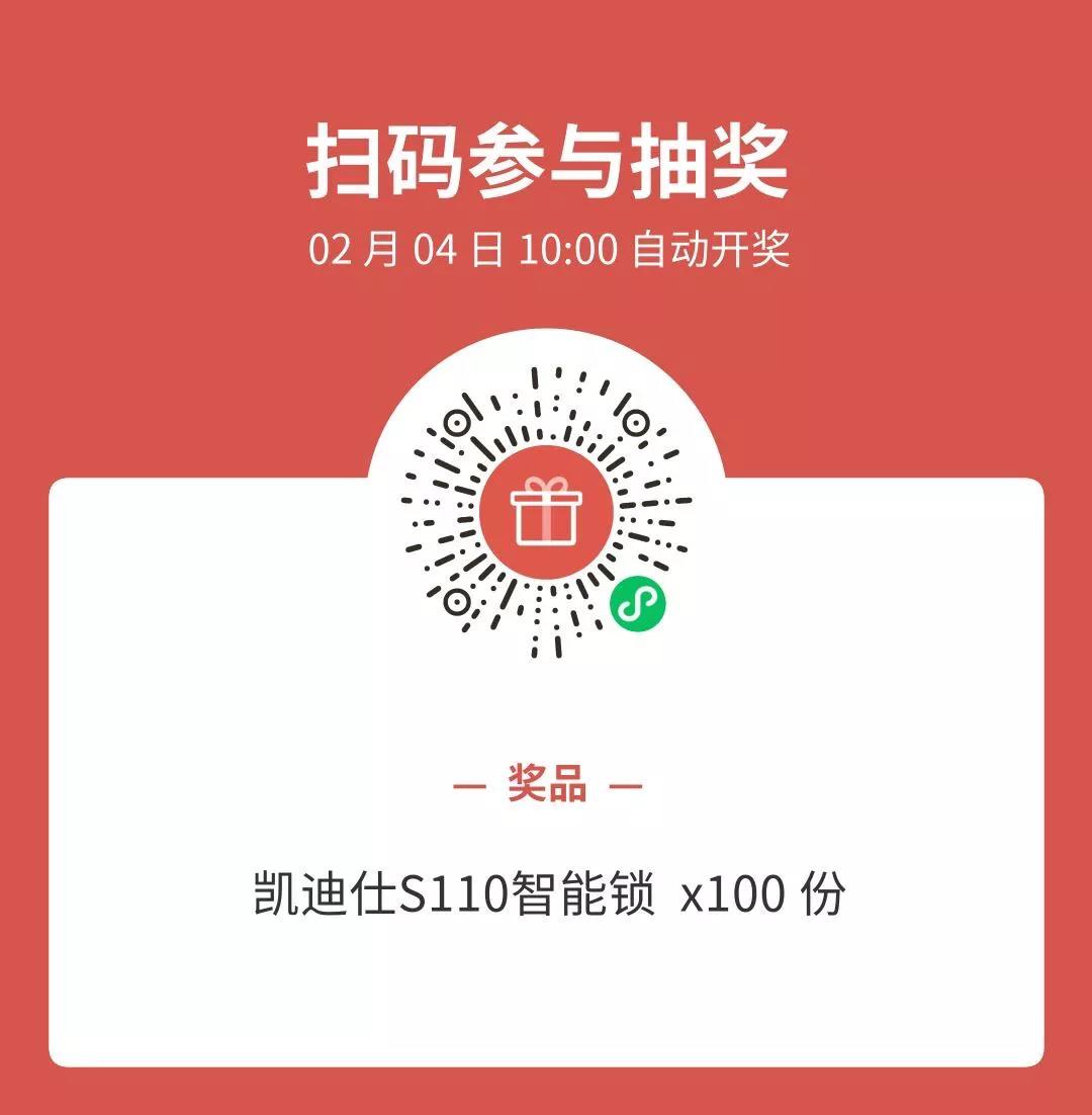 100套凱迪仕智能鎖免費送活動,目前仍在火熱進行中,凱迪仕S110寶藏智能鎖,在線等錦鯉帶回家!