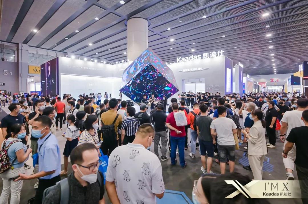 今年的展館以高達6米的3D魔方屏強勢吸睛,酷炫動感的粒子、幾何元素不斷變幻重組,以極具沖擊性的3D視效,吸引了眾多賓客現(xiàn)場拍照打卡。