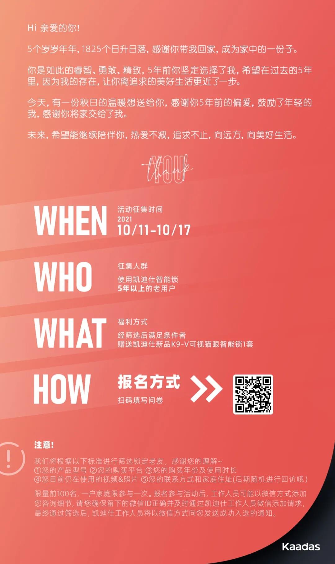 老友集合令 | 凱迪仕5年老用戶征集 · 100套智能鎖免費送!