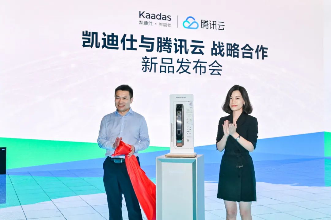 展會現(xiàn)場舉行了凱迪仕與騰訊云戰(zhàn)略合作新品發(fā)布會,凱迪仕常務(wù)副總經(jīng)理兼董事長助理李顯、騰訊云手機(jī)及智能硬件行業(yè)商務(wù)總經(jīng)理王敏出席發(fā)布會并致辭。