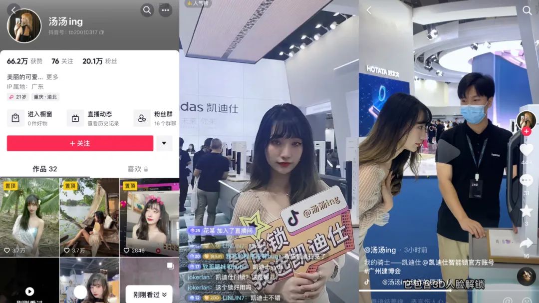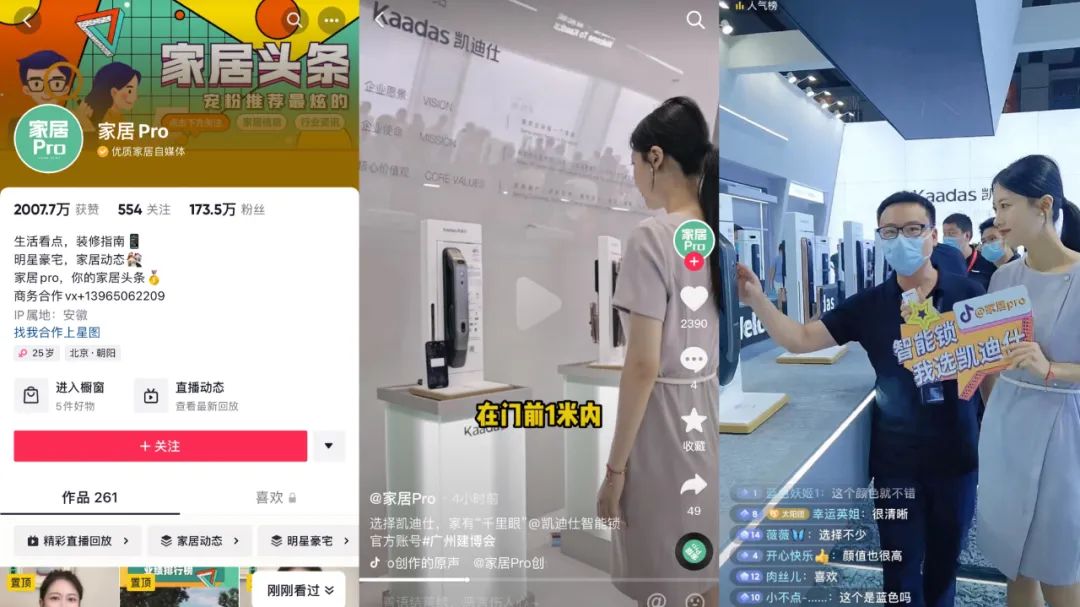 抖音廣東當(dāng)?shù)刂鸎OL@最廣州 、一兜糖認(rèn)證種草官@葉小夢是大吃貨 到凱迪仕展館探訪。抖音探店達人@敏儀醬(廣東家姐)、抖音高顏值高人氣達人@秋雨 、@天才煩惱多 、@湯湯ing 以及抖音優(yōu)質(zhì)家居自媒體@家居Pro 現(xiàn)場進行打卡直播,線下線下同步打通,開啟“云逛展”新熱潮。