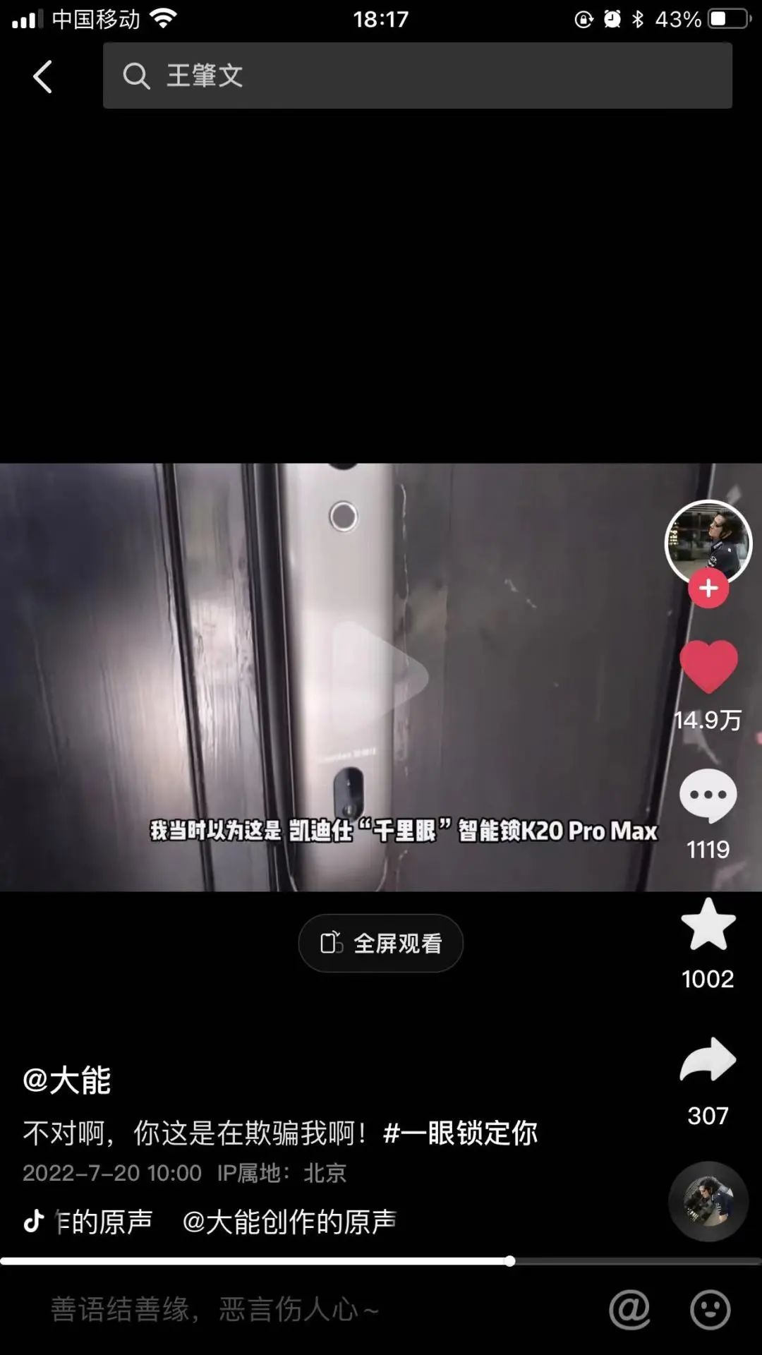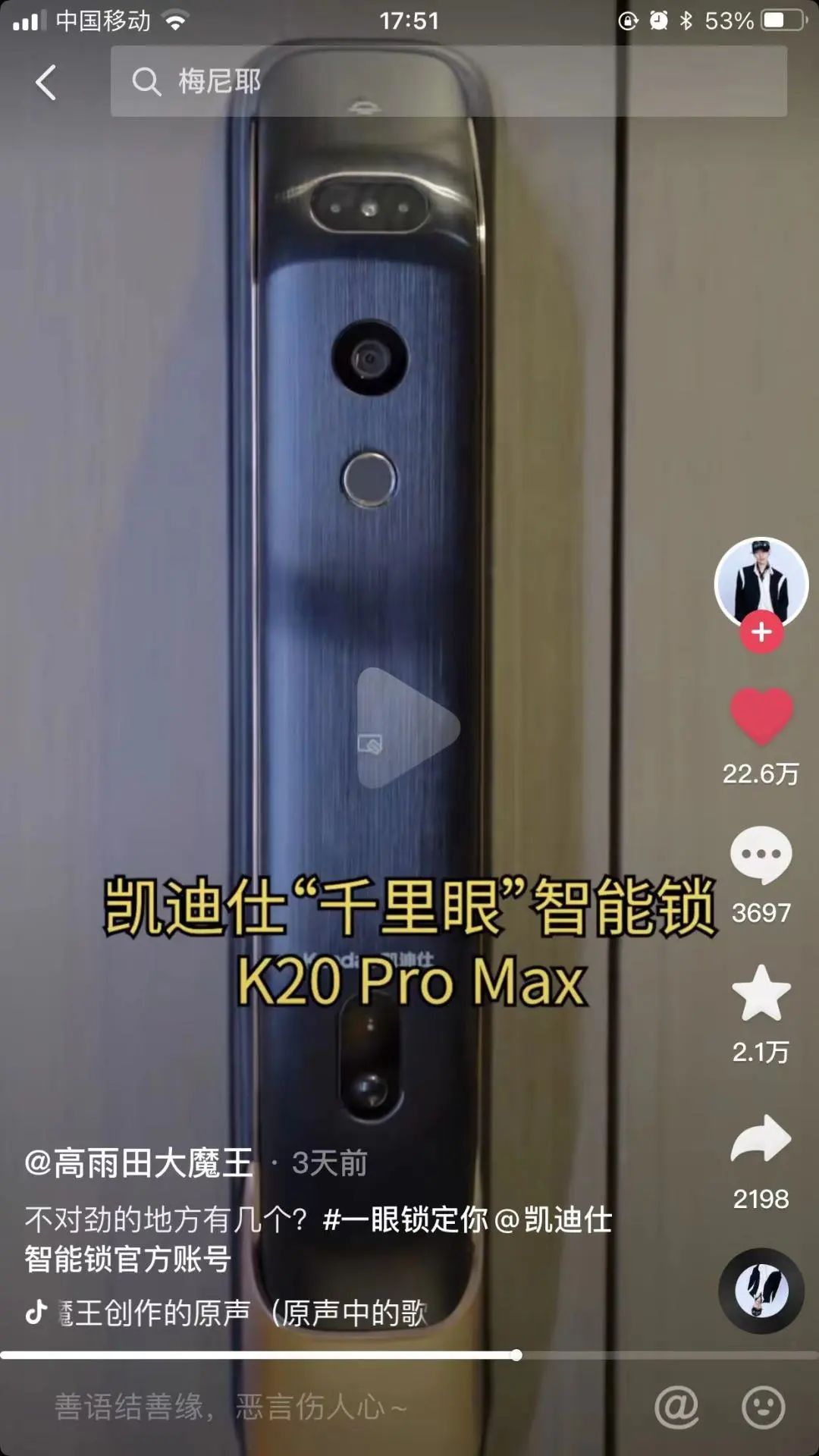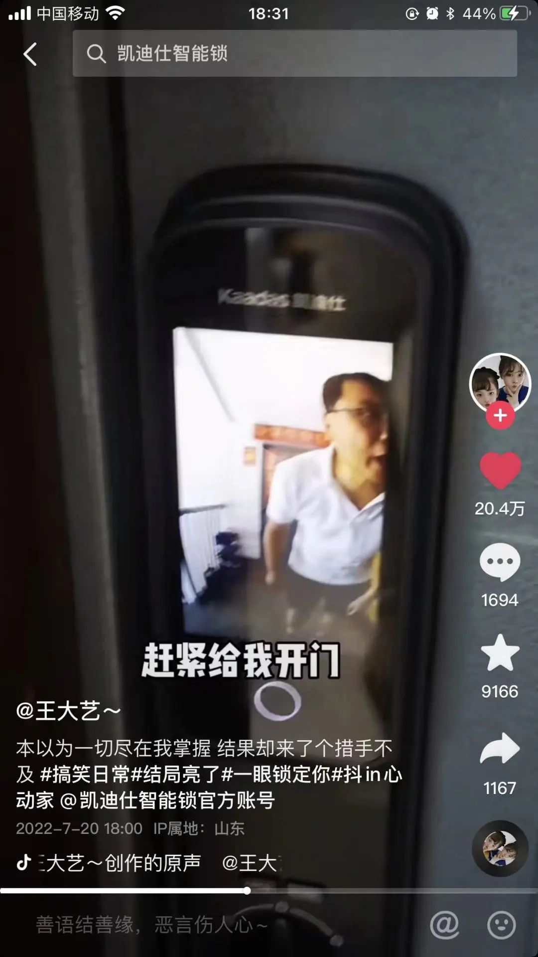 在抖音上掀起一場凱迪仕智能鎖種草狂潮,