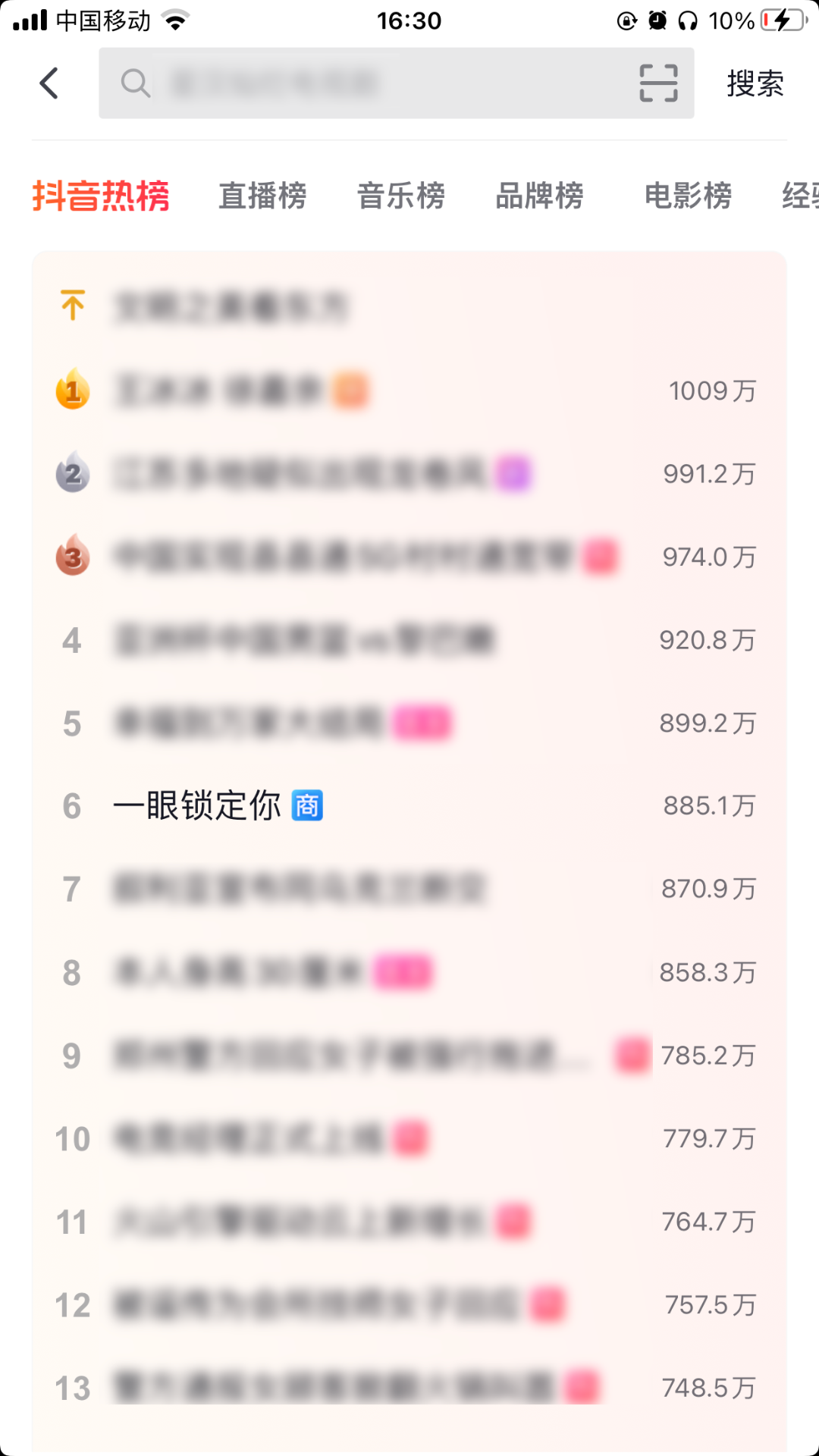 霸榜抖音官方熱搜榜。