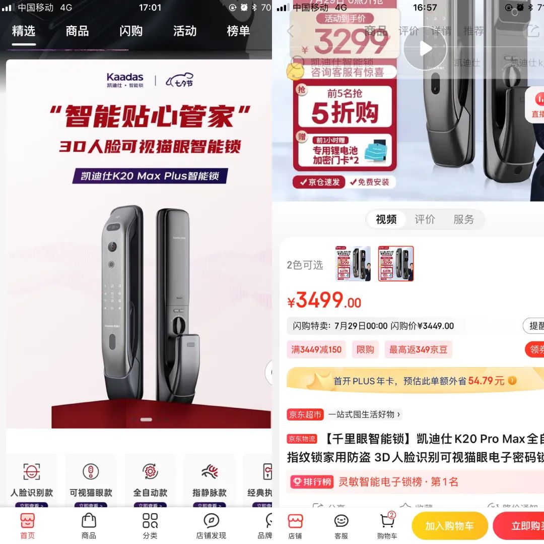 Kaadas凱迪仕品牌及K20 Pro Max智能鎖,