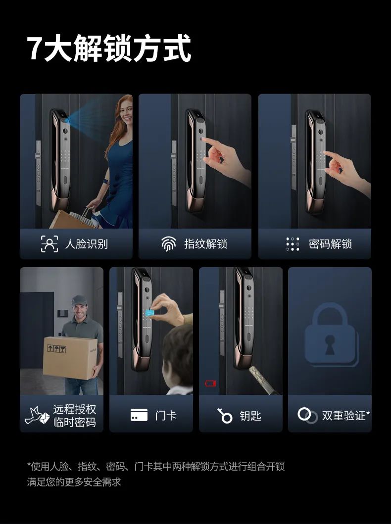 3D人臉、指紋、密碼、卡片等解鎖方式,都需要在智能鎖面板上進(jìn)行操作錄入。