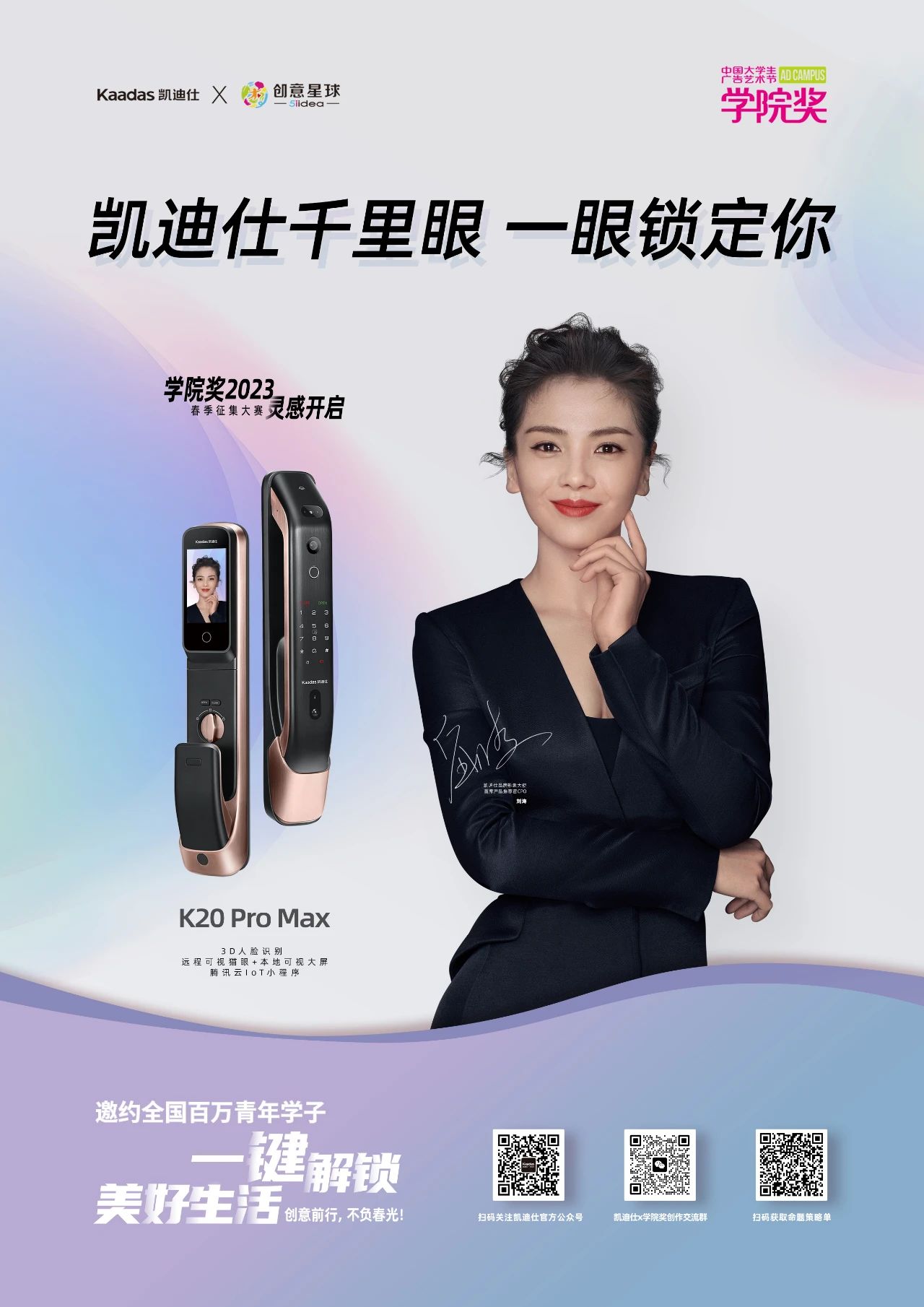 今日,中國大學(xué)生廣告藝術(shù)節(jié)學(xué)院獎(jiǎng)2023春季品牌進(jìn)校園·創(chuàng)意星球大講堂來到了首都北京,作為智能鎖行業(yè)首個(gè)且唯一一個(gè)攜手學(xué)院獎(jiǎng)的品牌,Kaadas凱迪仕受邀走進(jìn)中國傳媒大學(xué),與眾多學(xué)子暢聊品牌,共話創(chuàng)意,聆聽年輕一代發(fā)聲,聚青春之力共創(chuàng)智能美好生活。