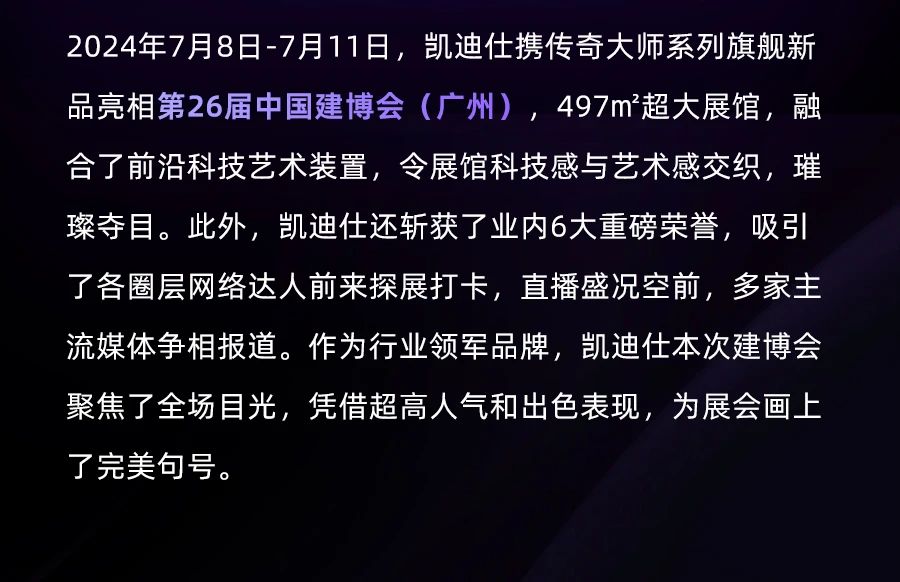 實力非凡,榮譽滿載!凱迪仕2024 「洞見 · 傳奇」建博會榮耀收官!