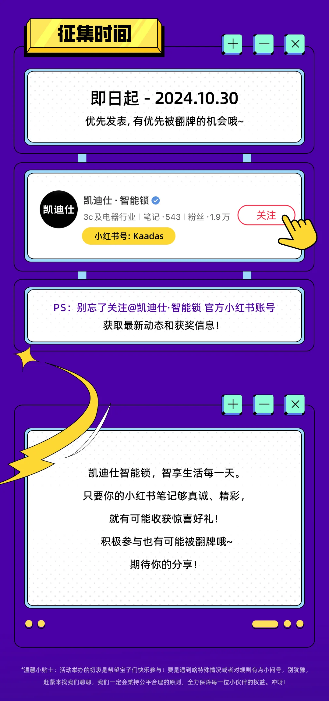 有獎征集!上小紅書分享凱迪仕智能鎖美圖,豐厚大禮等你抱回家!
