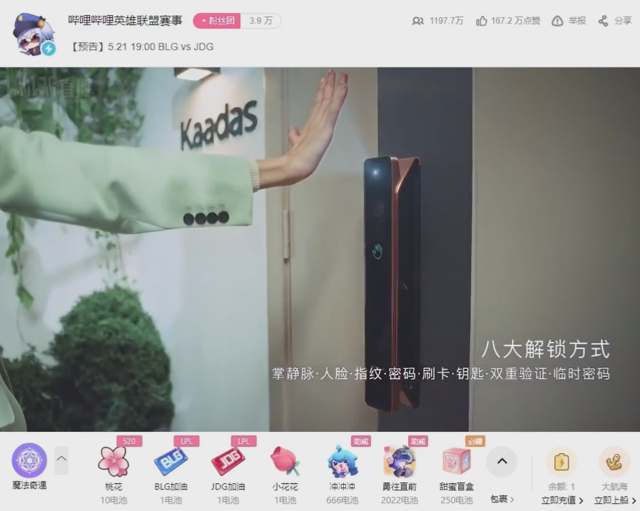 JDG奪冠!B站單場人氣值2億+,Kaadas凱迪仕攜手嗶哩嗶哩直播,全程助力中國戰(zhàn)隊(duì)力破萬障,包攬冠亞軍!